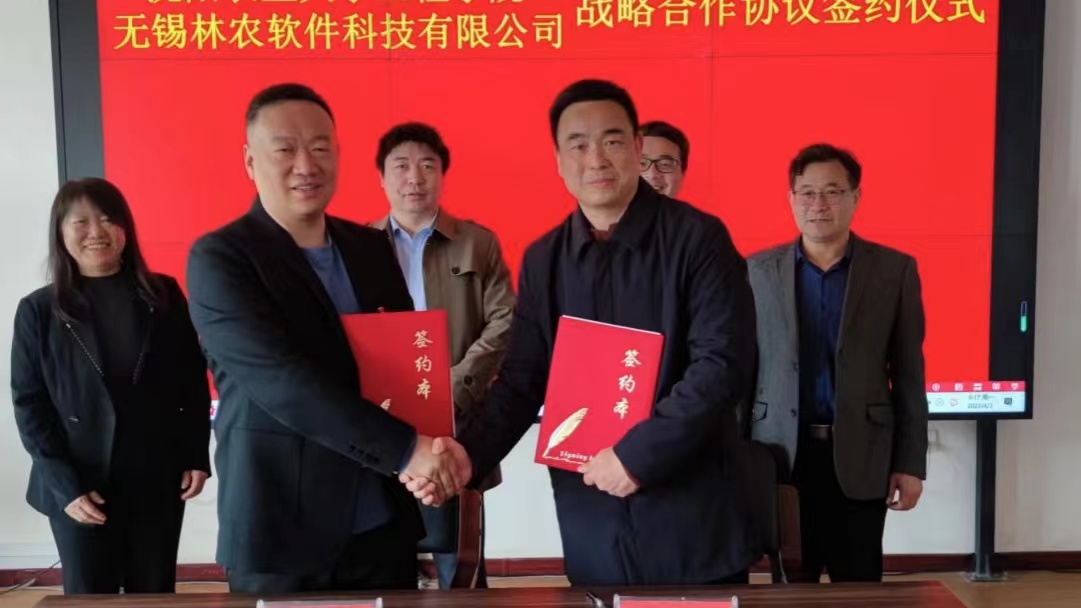 华体会院长王伟、副院长邬立岩、辛明金教授、宋玉秋教授、无锡林农软件科技有限公司董事长李小卫和总经理李巢湖出席签约仪式。