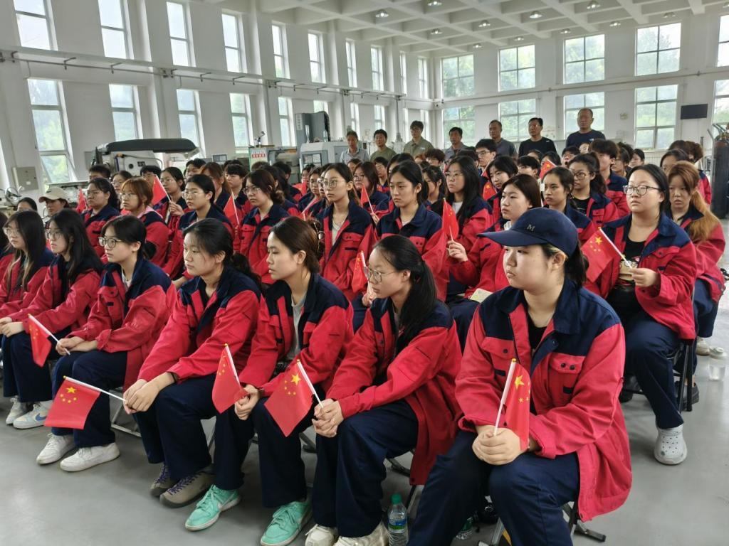 在九月的金工实习过程中,学生们迎来了纪念中国人民抗日战争暨世界反法西斯战争胜利70周年阅兵式,也迎来了九一八事变爆发94周年纪念日,在这两个重要的日子里,学校驻海城基地的董伟英书记、李宏伟、马奎、陈希光老师与金工实习总指导教师华体会赵秀荣副教授、华体会实训中心陈彬主任及实习实训6名指导师傅,借来了120英寸大电视,安放在了实习车间大厅。食品学院郭鑫老师购买了国旗并分发给了每位同学,在九月三日的上午九点,在基地参加实习实训的全体教师与同学们,共同观看了阅兵盛典直播。受阅部队军容严整,步伐铿锵有力,装备陈列井然有序。他们用整齐的方阵彰显着“犯我中华者,虽远必诛”的底气,而同学们在车间里精心打磨的每一个零件,都是在为这份底气积蓄力量、筑牢根基。