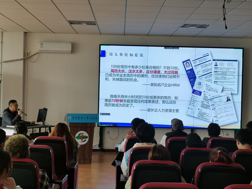 培训会中,董老师从简历的写作原则、完整结构、撰写要点、细节把控、校招现状等五个方面向同学们详细讲解了简历制作的过程及注意事项,同时强调简历制作过程中应该凸显求职意向和自身特色两个关键点,有针对性地制作、投递简历。培训会结束后,同学们又针对自身简历的实际问题进行了深入探讨和交流。同学们表示,本次培训会让自己更加明确了简历的设计思路和制作规范,为以后的就业求职提供了切实的帮助。