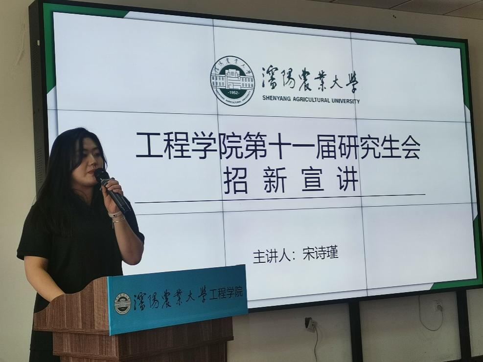 会议第一项,研究生辅导员董瀚辰为新生讲解研究生日常管理的相关规定和要求,内容涵盖学籍注册、请销假、评奖评优、推优入党等方面。会议第二项,第11届研究生会成员逐一进行招新宣讲。