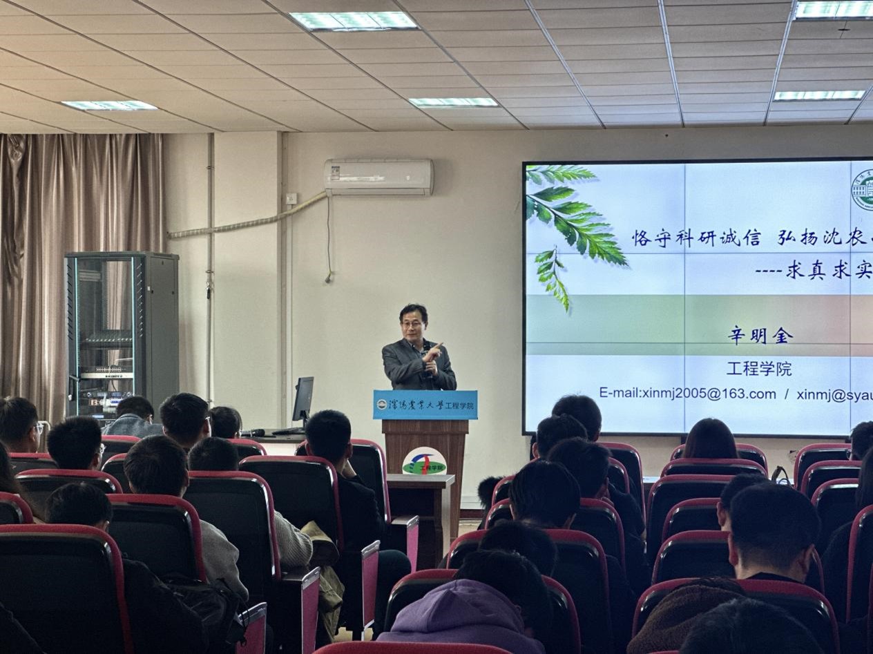 12月8日下午,华体会在501会议室举办“研究生科研诚信与学术道德”主题讲座。本次讲座由学院博士生导师、农业机械化工程学科带头人辛明金教授主讲。研究生辅导员董瀚辰、王立彬老师,华体会全体一年级研究生同学参加了本次讲座。