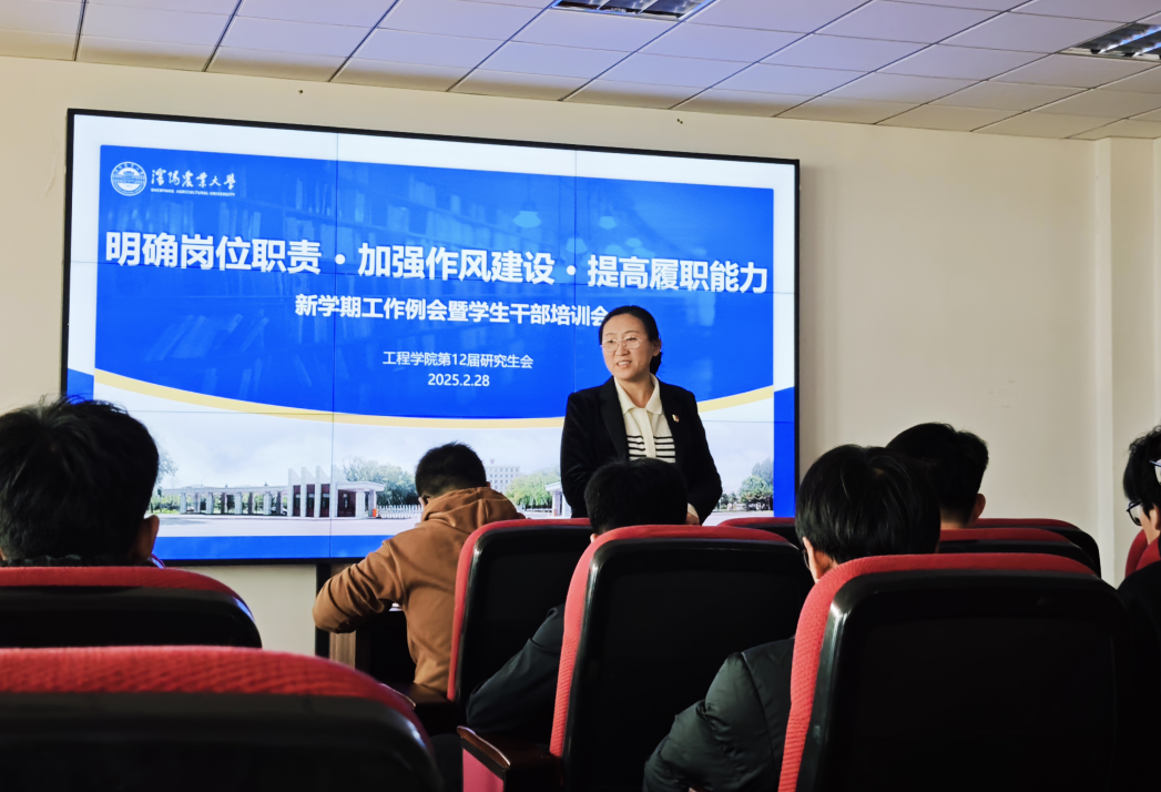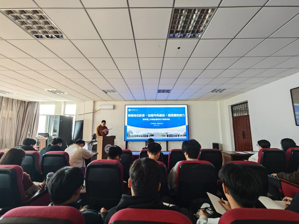 为明确学生干部岗位职责,加强作风建设,全面提升履职能力,2月28日下午,华体会第12届研究生会新学期工作例会暨学生干部培训会在华体会501会议室召开。学院党委书记王楠出席会议并讲话。会议由研究生辅导员董瀚辰主持。